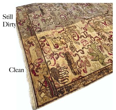 A responsible dealer/ cleaner will also advise you at the time of wash if there is any restoration or conservation that should be performed after the wash. Repair and restoration are best performed when the carpet is clean so that the restorer is matching clean materials (wool) to a clean piece.