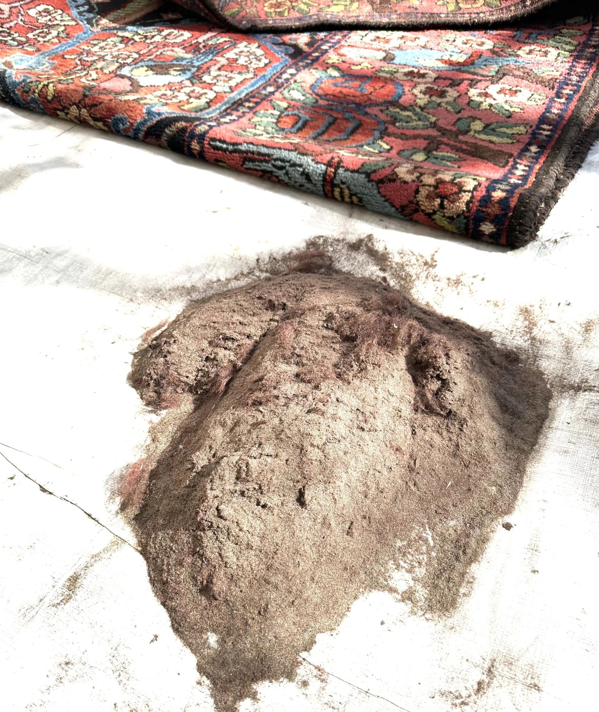 Aside from being beautiful, your Oriental rugs can act as one of the largest filters in the home. Each of the images below are examples of extreme neglect. This is the debris that is removed from the piece before it ever gets wet and is critical to a proper cleaning process.
