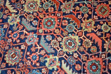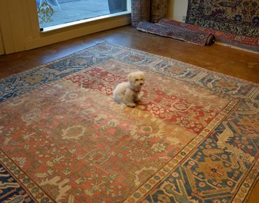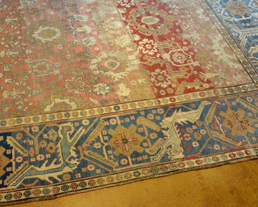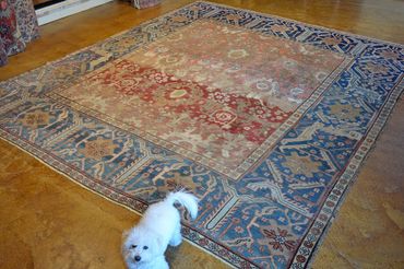 This circa 1880 Amritzar is in quite good condition with minor oxidation to the dark purples and minor lower areas. Bosts a fatter proportion with a grand and generous main border. $ available, please inquire